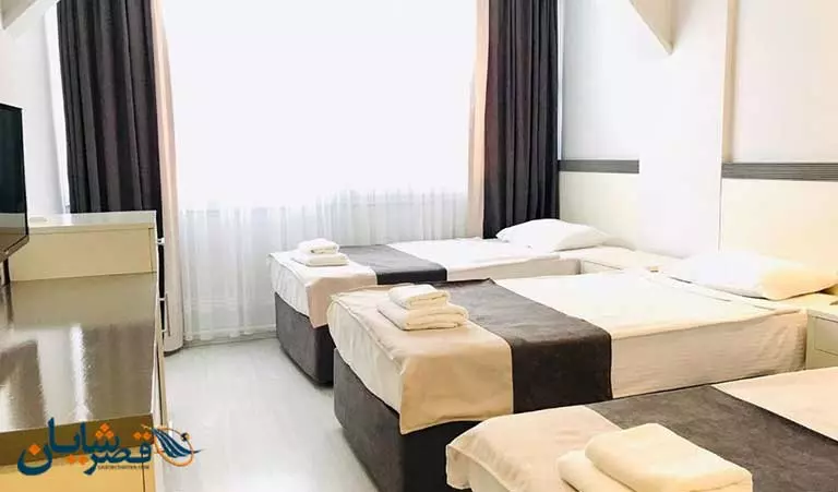 اتاق های هتل شامل اتاق توئین، دبل، تریپل می باشد تمامی اتاق ها از امکانات رفاهی نظیر تلویزیون صفحه تخت، کمد لباس، حمام اختصاصی (مجهز به دوش، وان، توالت فرنگی، لوازم بهداشتی )، سیستم تهویه مطبوع ، اینترنت و ... برخوردار است.