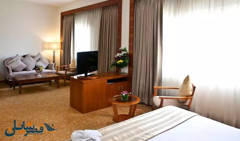 هتل دارای 174 بای اتاق است که اتاق ها شامل اتاق کینگ استاندارد،توئین استاندارد، سوئیت جونیور، سوئیت اکسکیوتیو، فمیلی روم و ... می باشد.تمامی اتاق ها دارای امکانات رفاهی تلویزیون با کانال های ماهواره ای، مبلمان، حمام اختصاصی به همراه سشوار و حوله و لوازم بهداشتی، یخچال، سیستم تهویه مطبوع ،چای ساز و قهوه ساز، اینترنت رایگان و ...هستند.