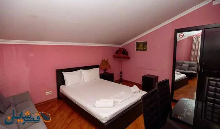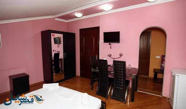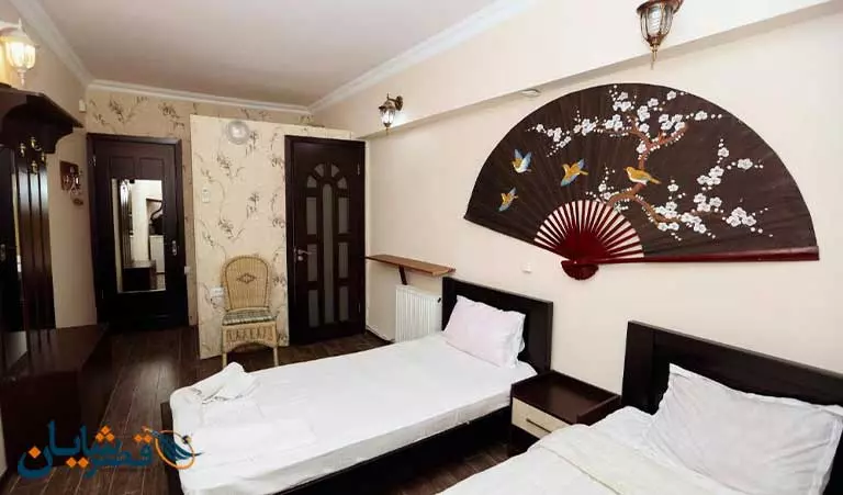 هتل دارای 11 باب اتاق است که اتاق ها شامل اتاق سینگل، دبل، تریپل می باشد تمامی اتاق ها دارای امکانات بسیار معمولی نظیر تراس، تلویزیون با کانال های ماهواره ای، حمام اختصاصی با لوازم بهداشتی، سشوار، سیستم گرمایش و سرمایش، اینترنت رایگان و ... است.