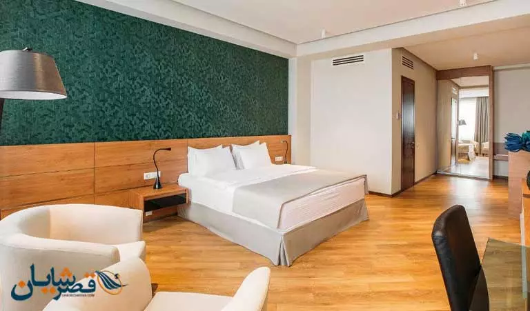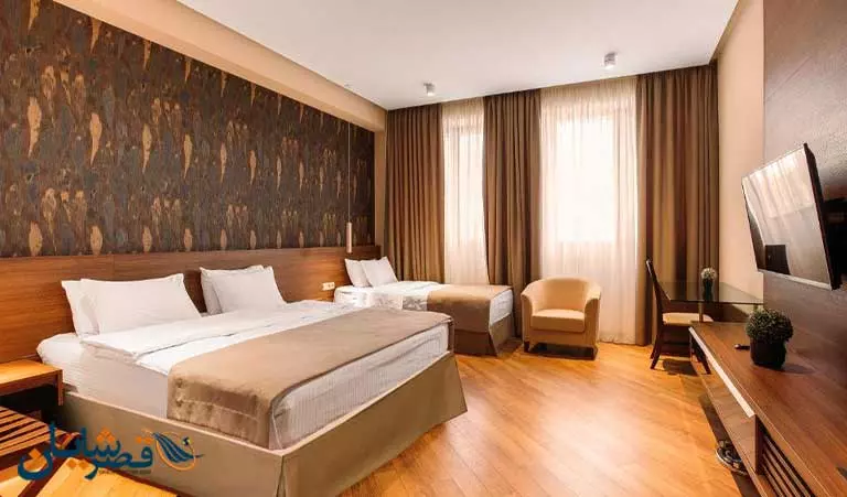 ساختمان هتل دارای 13 طبقه و 87 باب اتاق متعدد و سوئیت است که شامل اتاق دیلاکس سینگل، توئین سوپریور، دبل سوپریور،دیلاکس تریپل، کانفورت تریپل ، سوئیت سوپریور و... می باشد. تمامی اتاق ها از امکانات خوبی نظیر تلویزیون LCD با کانال های ماهواره ای، یخچال،حمام اختصاصی با لوازم بهداشتی مجهز، مینی بار، قهوه ساز ، چای ساز ، سیستم تهویه مطبوع، اینترنت رایگان و ... برخوردار است.