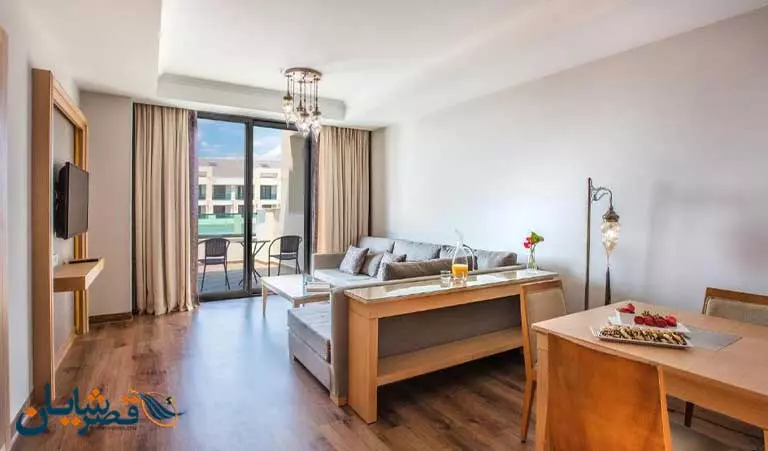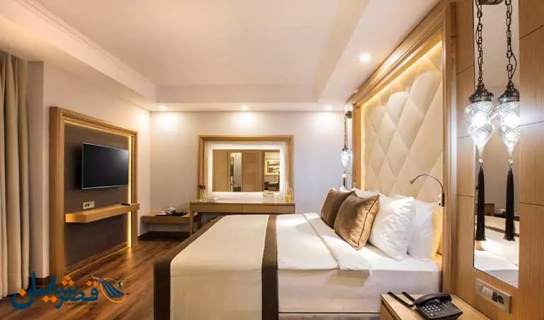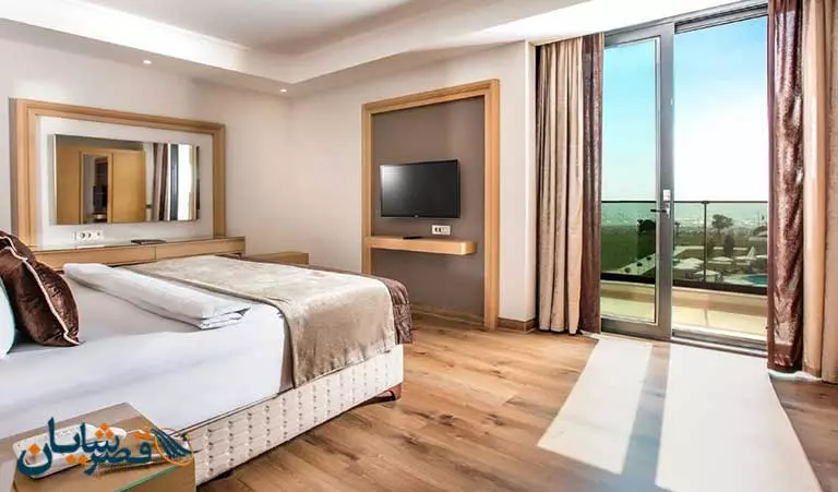 ساختمان هتل در 8 طبقه بنا شده و در مجموع هتل دارای 596 باب اتاق و سوئیت می باشد. اتاق ها شامل اتاق سینگل، دبل سوئیت، جونیورسوئیت،سوئیت گاردن، فمیلی روم و ... است و همچنین برخی از اتاق ها نیز سی ویو (رو به دریا) می باشد.تمامی اتاق ها از انمکانات رفاهی بسیار مدرن و با کیفیت نظیر تلویزیون ماهوارهای ، فضای نشیمن با مبلمان مدرن، حمام اختصاصی با امکانات بهداشتی ، سیستم تهویه ، مینی بار، دستگاه چای ساز و قهوه ساز،گاو صندوق،تلفن، اینترنت رایگان و ... برخوردار است.