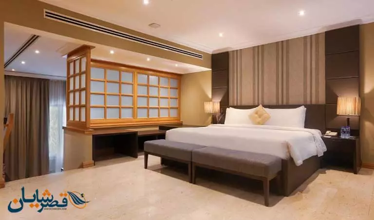 هتل دارای 195 باب اتاق و سوئیت می باشد که بسیار شیک و مدرن طراحی شده است . اتاق ها شامل اتاق دبل استاندارد،دیلاکس روم، سوئیت اکسکیوتیو، سوئیت رویال ، سوئیت پرزیدنتال، فمیلی روم و... است. تمامی اتاق ها دارای امکانات ویژه نظیر تلویزیون صفحه تخت با کانال های ماهواره ای، مبلمان، تختهای لوکس و مدرن، کمد لباس، میز کار، یخچال، حمام اختصاصی با وان، لوازم کامل آرایشی و بهداشتی،سشوار،چای ساز و قهوه ساز، سیستم تهویه مطبوع ، اینترنت رایگان و ... هستند.همچنین برخی اتاق ها دارای تراس نیز می باشد.