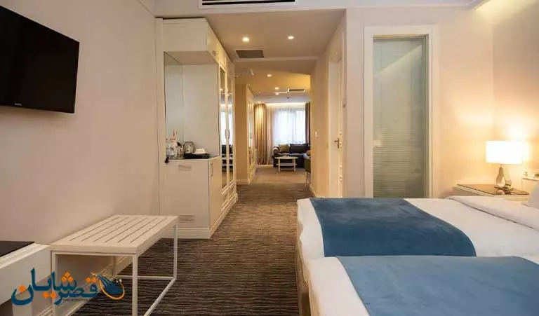 هتل دارای 37 باب اتاق است که اتاق ها شامل اتاق توئین کلاسیک، دبل کلاسیک،توئین دیلاکس، دبل دیلاکس، فمیلی روم، سوئیت، سوئیت جوتیور و ... می باشد. تمامی اتاق ها دارای امکاناتی نظیر تلویزیون با شبکه‌های ماهواره‌ای، کمد لباس،مبلمان،حمام اختصاصی مجهز به لوازم بهداشتی، یخچال، میز کار،سشوار، سیستم گرمایشی و سرمایشی، اینترنت رایگان و ... هستند.