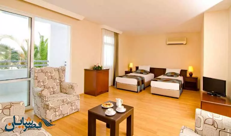 هتل در مجموع دارای 125 باب اتاق و سوئیت است.اتاق ها شامل اتاق توئین استاندارد لند ویو، دبل استاندارد لند ویو ،توئین سی ویو (رو به دریا)، دبل سی ویو (رو به دریا) ، اتاق فمیلی روم و ... است. تمامی اتاق ها دارای امکانات رفاهی نظیر بالکن، تهویه مرکزی، تلفن مستقیم، تلویزیون با کانال های ماهواره ای، حمام اختصاصی با لوازم ، اینترنت و ... است.