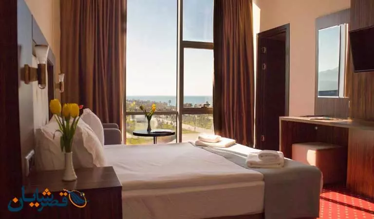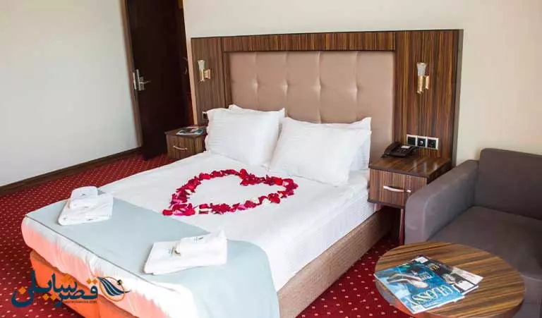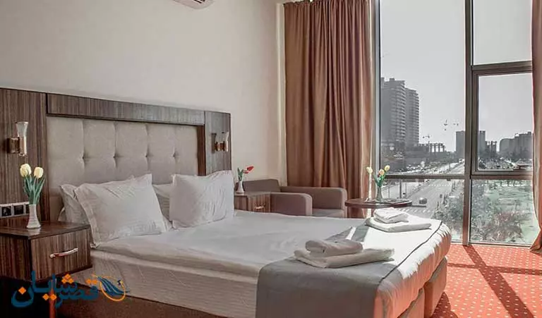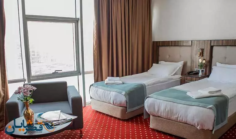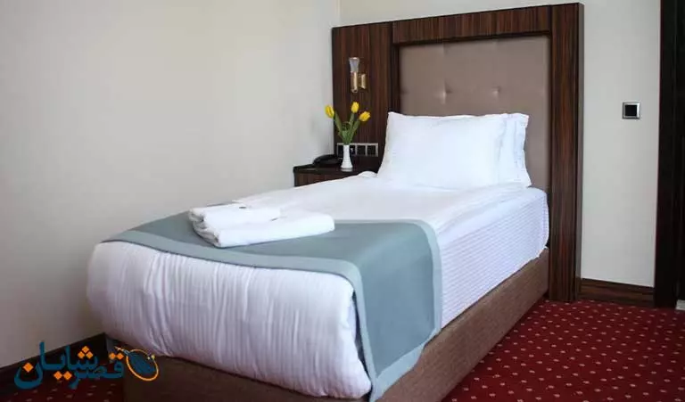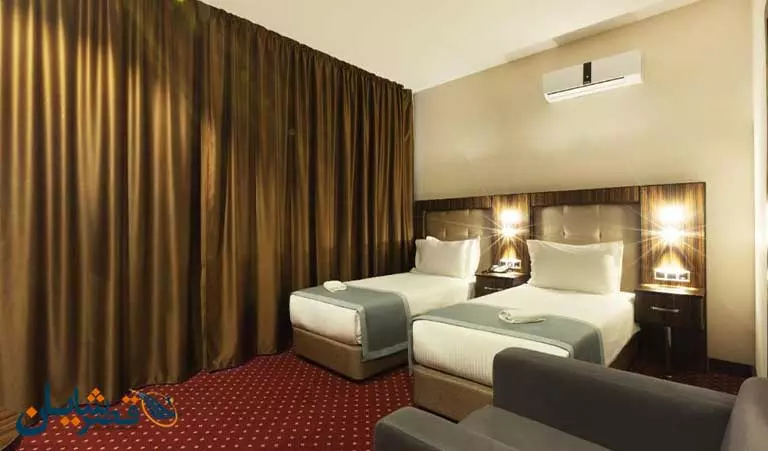 هتل دارای 109 باب اتاق است که اتاق ها شامل اتاق سینگل، توئین ، دبل، تریپل و ...می باشد. تمامی اتاق ها دارای امکاناتی نظیر تلویزیون با کانال های ماهواره ای، تخت خواب های استاندارد، مبلمان،کمد لباس،حمام اختصاصی به همراه سشوار و حوله و لوازم بهداشتی، سیستم تهویه مطبوع ، اینترنت رایگان و ... برخوردار است.
