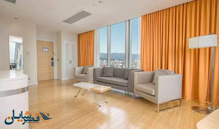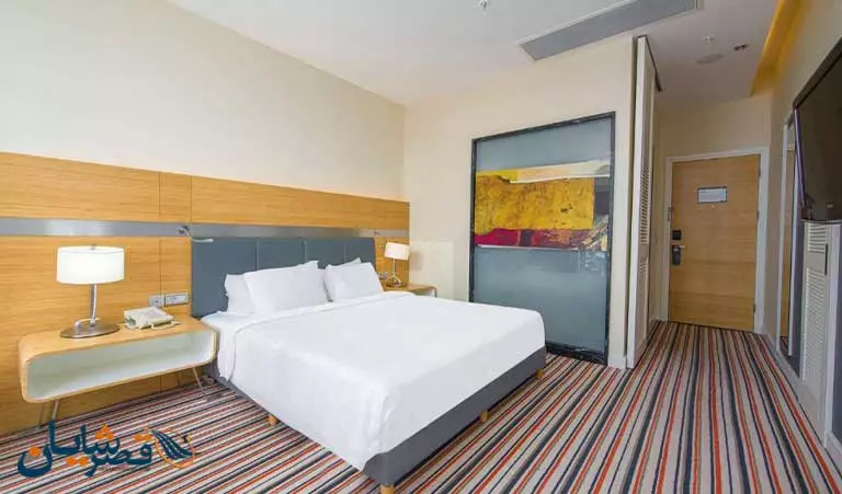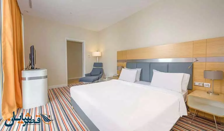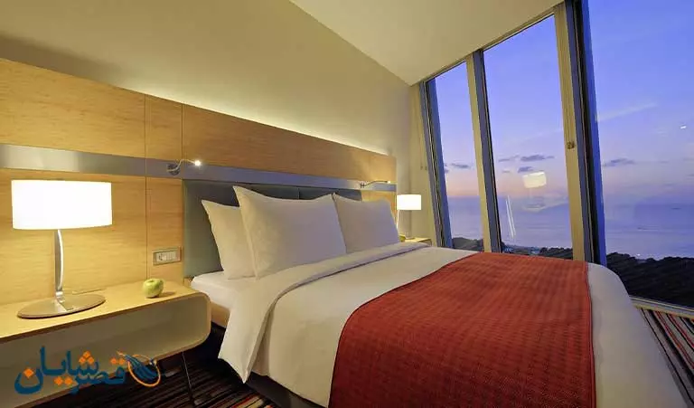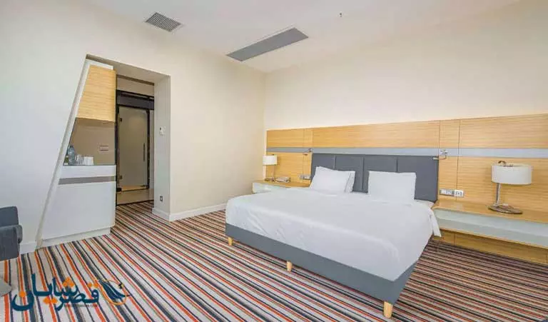 هتل دارای 168 باب اتاق های متنوع و متعدد است که بسیار مدرن طراحی شده است. اتاق ها شامل اتاق دبل استاندارد، سوپریور روم، سوئیت سی وی (رو به دریا)، فمیلی سوئیت، سوئیت جونیور، پریمیوم روم، فمیلی روم و ...می باشد. تمامی اتاق ها دارای امکاناتی با کیفیت  نظیر تلویزیون با کانال های ماهواره ای، تخت خواب های استاندارد،مبلمان، حمام اختصاصی به همراه سشوار و حوله و لوازم بهداشتی، سیستم تهویه مطبوع ، اینترنت رایگان و ... برخوردار است.