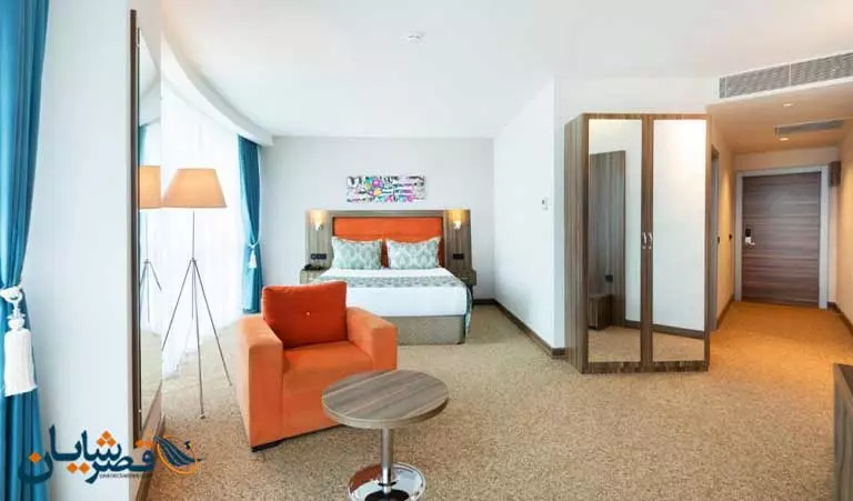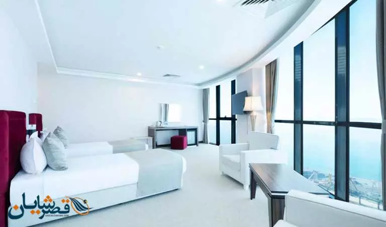 هتل دارای اتاق های متنوع و متعددی است.اتاق ها شامل اتاق توئین سیتی ویو ( رو به شهر)، دبل سیتی ویو ( روبه شهر)، توئین سی ویو ( رو به دریا) ، دبل سی ویو ( رو به دریا)، دبل دیلاکس، توئین دیلاکس، سوئیت فمیلی، فمیلی روم و ...می باشد. تمامی اتاق ها دارای امکاناتی خوب نظیر تلویزیون با کانال های ماهواره ای، تخت خواب های استاندارد، مبلمان، حمام اختصاصی به همراه سشوار و حوله و لوازم بهداشتی، سیستم تهویه مطبوع ،چای ساز و قهوه ساز، اینترنت رایگان و ... برخوردار است.