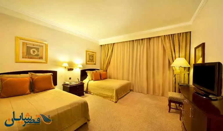 هتل دارای 159 باب اتاق است که اتاق ها شامل اتاق توئین، دبل ، تریپل، سوئیت،دبل پریمیوم، فمیلی روم و ... است. تمامی اتاق ها دارای تراس است و با دکوراسیون مدرن طراحی شده است و از امکاناتی ویژه نظیر تلویزیون صفحه تخت با کانال های ماهواره ای، کمد، مبل، حمام اختصاصی مجهز به لوازم بهداشتی، وان و...، یخچال، قهوه ساز و چای ساز، تلفن ،سیستم تهویه مطبوع، سیستم سرمایشی، اینترنت رایگان و... برحوردار هستند.