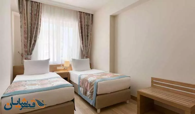 این هتل دارای 380 باب اتاق می باشد که اتاق ها شامل اتاق دبل ، تریپل، سوئیت خانوادگی،اتاق سوپریور و ... است و تمام ااتاق ها از امکانات رفاهی مانند تلویزیون، ماهواره، مینی بار، اینترنت رایگان و امکانات بهداشتی، دیسکو، بار، رستوران، سونا، جکوزی، استخر، مرکز ژیمناستیک، پارک آبی، امکانات ورزشی آبی و ...برخوردار است.