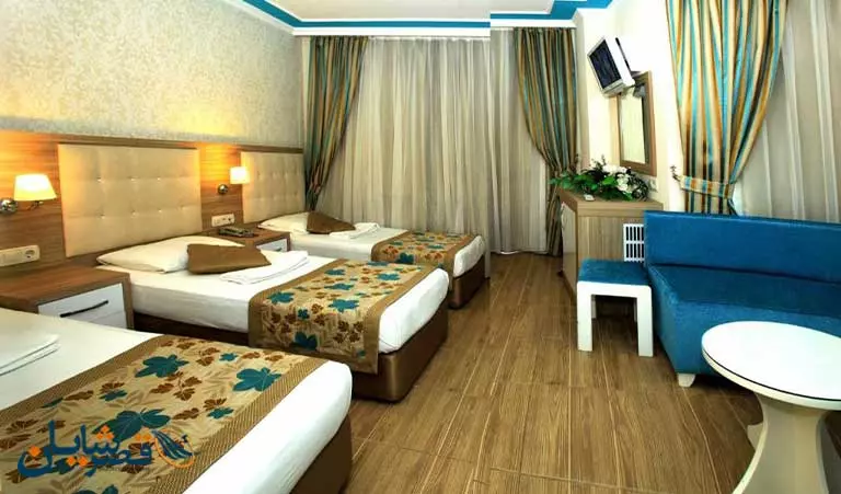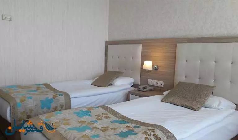 این هتل دارای 156 باب اتاق است که اتاق ها شامل اتاق دبل،تریپل، اتاق خانواده و سوئیت می باشد و تمامی اتاق ها دارای امکانات اختصاصی نظیر تختخواب، تلویزیون ، یخچال و حمام خصوصی، امکانات سلامتی و تفریحی هتل شامل حمام سنتی ترکی، سونا و مرکز تناسب اندام و ... برخوردار است.همچنین اکثر اتاق های هتل دارای بالکن است.