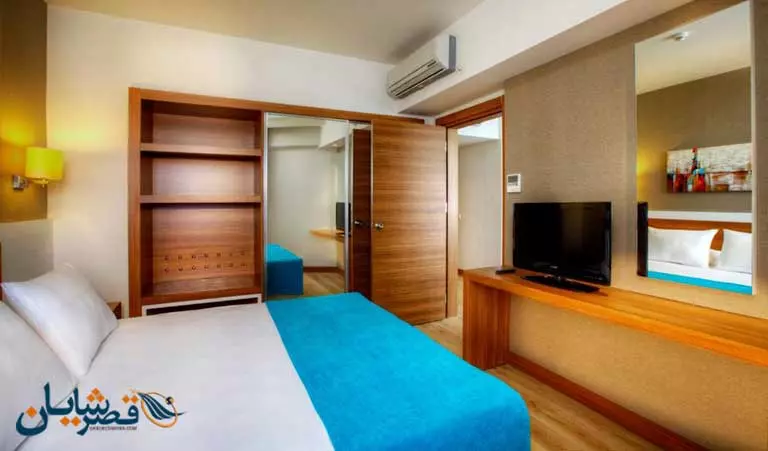 این هتل دارای 4 ساختمان مجزا است و 896 باب اتاق دارد که اتاق ها شامل اتاق سینگل، دبل ، دیلاکس فمیلی ، اتاق فامیلی الیت،اتاق پرومو فامیلی و...می باشد.اتاق ها از امکانات رفاهی از جمله اثاثیه مدرن، تلویزیون، کاناپه، چایساز، یخچال و ... می توان اشاره نمود.