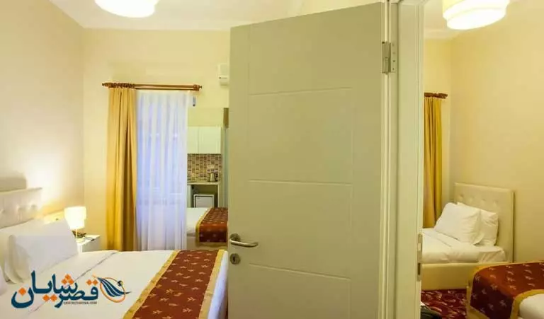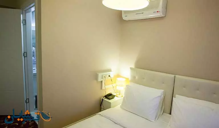 هتل دارای 25 باب اتاق است که اتاق ها شامل اتاق سینگل، دبل استاندارد، تریپل استاندارد، فمیلی روم می باشد. تمامی اتاق ها از امکاناتی نظیر تختخواب،مبل، کمد لباس،تلویزیون با کانال های ماهواره ای، حمام اختصاصی مجهز به دوش،لوازم بهداشتی،سشوار، سیستم تهویه مطبوع، اینترنت رایگان و... برخوردار است.