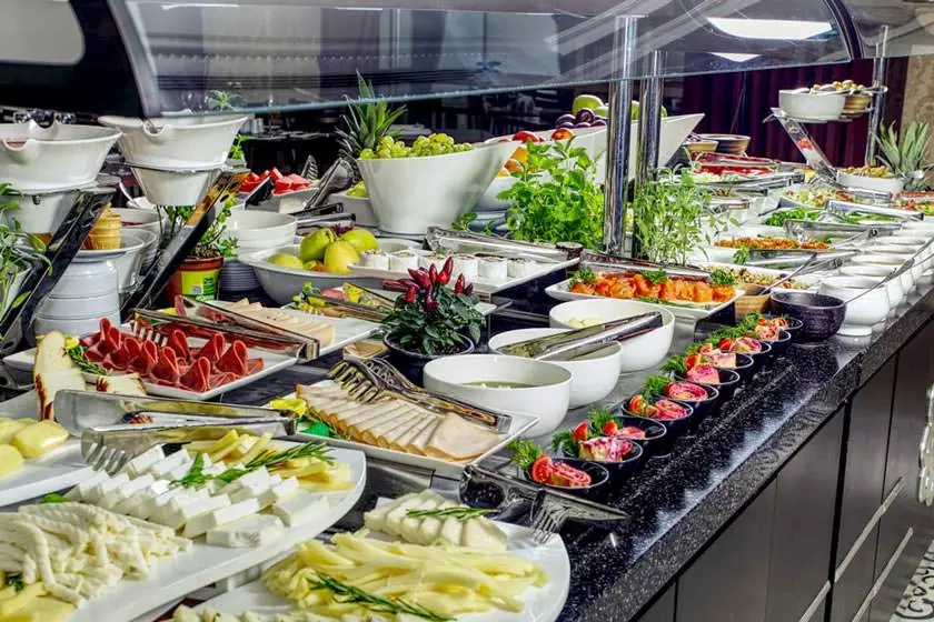 در هتل گرند ماکل صبحانه هر روز ارائه می شود. یک رستوران درهتل وجود دارد که انواع غذاهای بریتانیایی را سرو می کند.در ضمن رستوران در پشت بام قرار گرفته که ویژگی جالبی به حساب می آید.