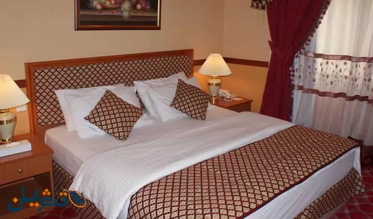 ساختمان هتل در 4 طبقه و دارای 50 باب اتاق است که اتاق ها شامل اتاق سینگل، توئینن، دبل، تریپل و ... می باشد.تمامی اتاق ها دارای امکانات معمولی نظیر تختخواب، مبل، تلویزیون با کنال های ماهواره ای، یخچال،حمام اختصاصی با لوازم،سشوار، سیستم گرمایشی و سرمایشی، چای ساز و قهوه ساز، اینترنت رایگان و ... هستند.