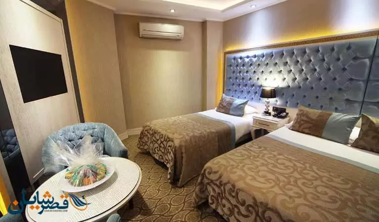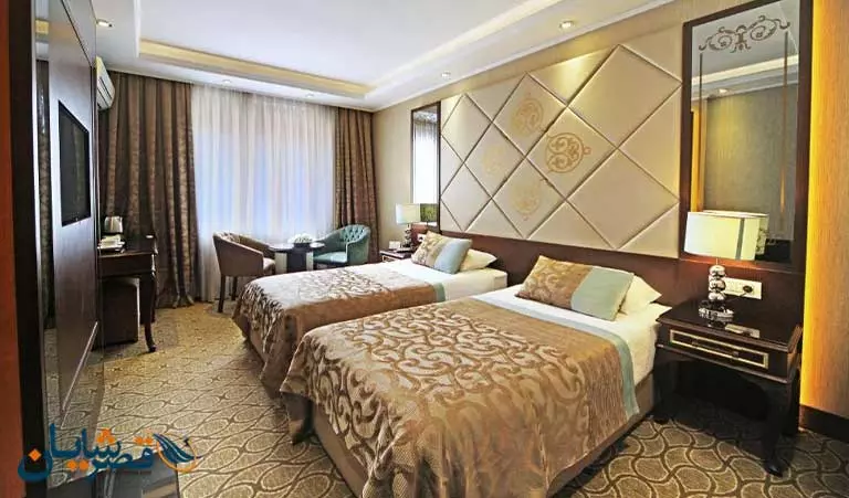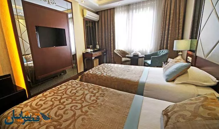 هتل دارای 98 باب اتاق و سوئیت است که اتاق ها شامل اتاق دبل استاندارد، دبل سوپریور، تریپل استاندارد، تریپل سوپریور، فمیلی روم و ... می باشد.تمامی اتاق ها دارای امکاناتی نظیر تلویزیون با کانال های ماهواره ای، تختخواب استاندارد، مبلمان، کمد لباس، حمام اختصاصی مجهز به لوازم آرایشی رایگان ، سشوار، سیستم تهویه مطبوع ، اینترنت رایگان و ...می باشد.