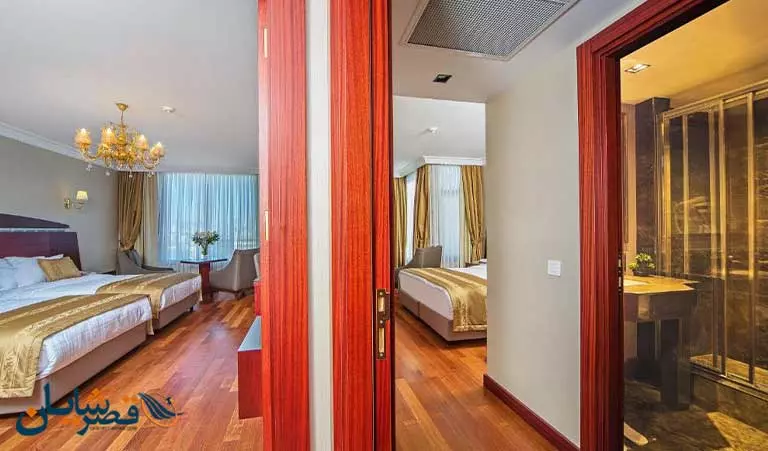 هتل دارای 146 باب اتاق است که بسیار مدرن و شیک طرتحی شده است .اتاق ها شامل اتاق دبل استاندارد، توئین استاندارد، تریپل استاندارد،سوئیت، فمیلی روم و ... می باشد.تمامی اتاق ها دارای امکاناتی نظیر تلویزیون با کانال های ماهواره ای، تختخواب استاندارد، مبلمان، کمد لباس، حمام اختصاصی مجهز به لوازم آرایشی رایگان ، سشوار، سیستم تهویه مطبوع ، اینترنت رایگان و ...می باشد.