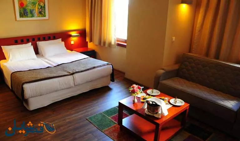 هتل دارای 102 باب اتاق و سوئیت است که اتاق های هتل شامل اتاق دبل استاندارد، توئین استاندارد،، سوئیت جونیور، فمیلی روم و... می باشد. تمامی اتاق ها دارای امکاناتی نظیر تلویزیون با کانال های ماهواره ای، تختخواب استاندارد، مبلمان، کمد لباس، حمام اختصاصی مجهز به لوازم آرایشی رایگان ، سشوار، سیستم تهویه مطبوع و ...می باشد.
