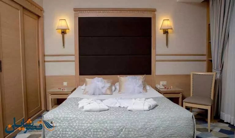 ساختمان هتل دارای 9 طبقه و 442 بای اتاق است .اتاق ها شامل اتاق سینگل ، دبل استاندارد ، دبل رو به دریا ، تریپل استاندارد ،دیلاکس فمیلی ،سوئیت کینگ ، فامیلی روم (اتاق خانواده ) و ... می باشد و تمامی اتاق ها دارای امکانات رفاهی نظیر تلفن مستقیم، مینیبار، تلویزیون های LCD، مینی بار، چای ساز و قهوه ساز، سشوار و... هستند .همچنین بیشتر اتاق های هتل دارای بالکن است.
