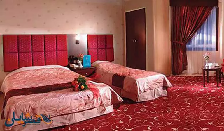 ساختمان این هتل در 10 طبقه و دارای 164 باب اتاق می باشد که اتاق ها شامل اتاق دوتخته، سه تخته ، چهار تخته که هر کدام از این اتاقها دارای کلاس A,B,C است و همچنین هتل دارای آپارتمان دو خوابه چهارنفره A,C می باشد .اتاقها از امکاناتی مانند تختخواب،مبلمان، دراور،کمد لباس،یخچال، تلویزیون، سیستم گرمایش و سرمایش، صندوق امانات و... برخوردار است.
