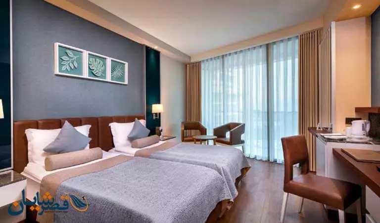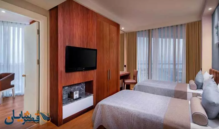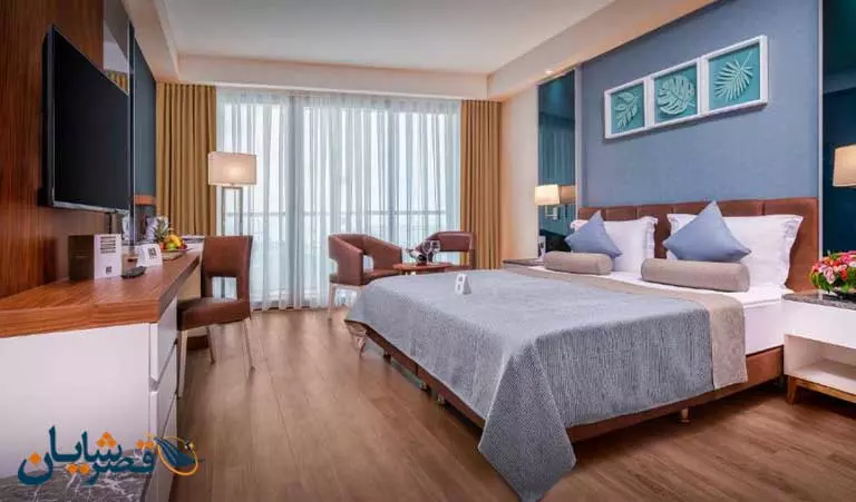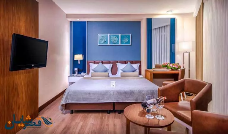 هتل دارای 399 باب اتاق و سوئیت است که اتاق ها شامل اتاق توئین استاندارد، دبل استاندارد، تریپل، فمیلی روم و... می باشد. همچنین برخی از اتاق ها سی ویو ( رو به دریا ) است. تمامی اتاق ها دارای امکاناتی نظیر تختخواب استاندارد، مبل، میز آرایش، حمام اختصاصی مجهز به دوش، لوازم بهداشتی ، سشوار، تلویزیون با کانال ماهواره ای، قهوه ساز، چای ساز،مینی بار، سیستم تهویه مطبوع، اینترنت رایگان و... است.