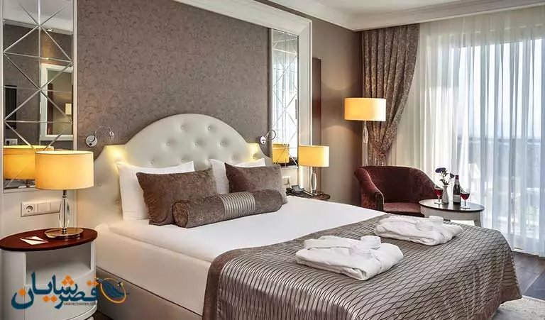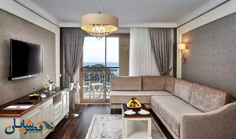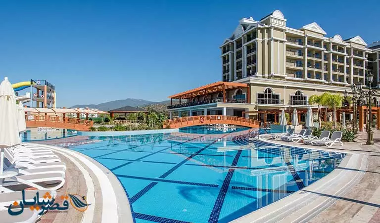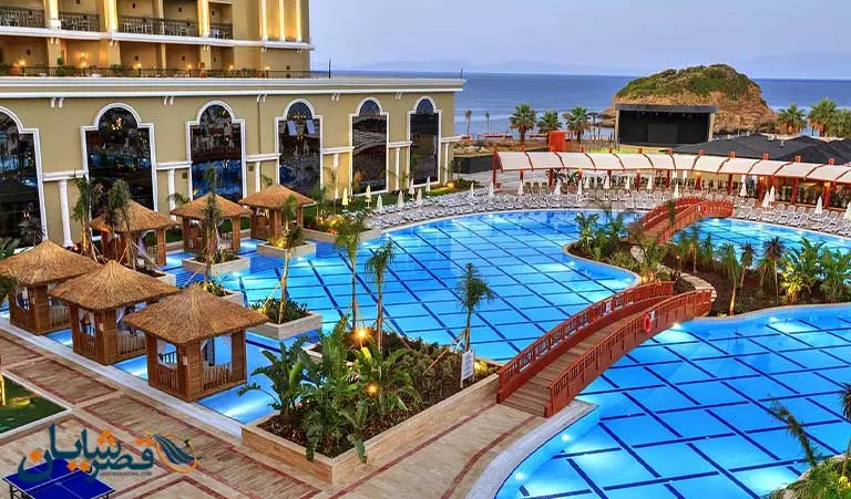 هتل 5 ستاره هتل سانیس افس رویال پالاس یکی از بهنرین و لوکس ترین هتل های کوش آداسی محسوب می شود. مساحت این هتل 53000 متر مربع است و دارای امکانات رفاهی بسیار مجهز و لوکس می باشد.هتل سانیس افس دارای ساحل اختصاصی است و برای گردشگران تور کوش آداسی که می خواهند اقامتی به یاد ماندنی با بهترین امکانات داشته باشند بسیار مناسب و ایده آل است.