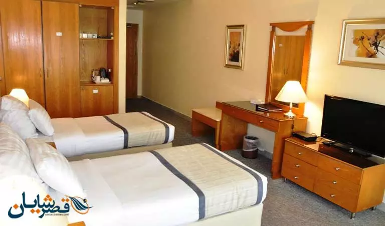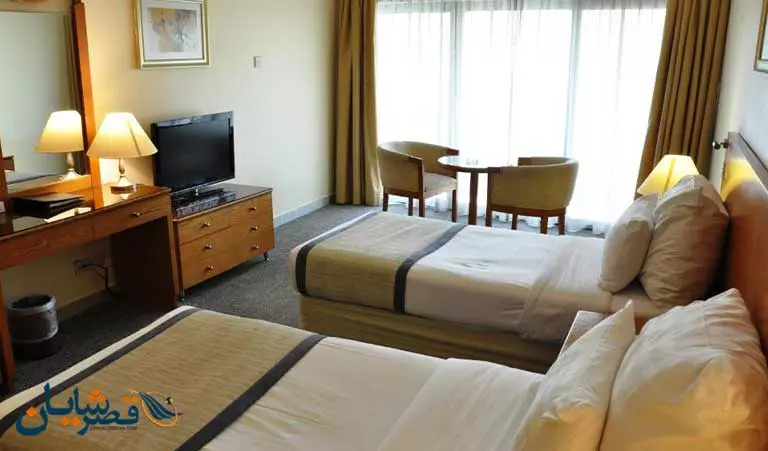 هتل دارای 117 باب اتاق است که اتاق ها شامل اتاق دبل استاندارد، توئین استاندارد، تریپل،دبل دیلاکس است.تمامی اتاق ها از امکاناتی نظیر تلویزیون با کانال های ماهواره ای،مبلمان، حمام اختصاصی به همراه سشوار و حوله و لوازم بهداشتی، سیستم تهویه مطبوع ،چای ساز و قهوه ساز، اینترنت رایگان و ... برخوردار است.