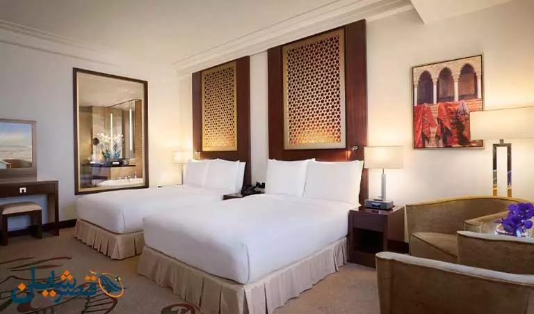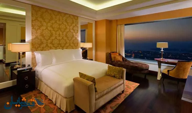 هتل دارای 555 باب اتاق و سوئیت متنوعی می باشد که اتاق ها شامل اتاق دبل استاندارد، دیلاکس دبل روم، دیلاکس توئین روم، دیلاکس کینگ روم، سوئیت رویال، سوئیت رزیدنتال، فمیلی سوئیت و ... است. تمامی اتاق ها دارای امکانات ویژه نظیر تلویزیون صفحه تخت با کانال های ماهواره ای،مبلمان، تختهای لوکس و مدرن، کمد لباس، میز کار، یخچال، حمام اختصاصی با وان، لوازم کامل آرایشی و بهداشتی،سشوار، سیستم تهویه مطبوع ، اینترنت رایگان و ... هستند.همچنین برخی از اتاق ها دارای تراس نیز می باشد.