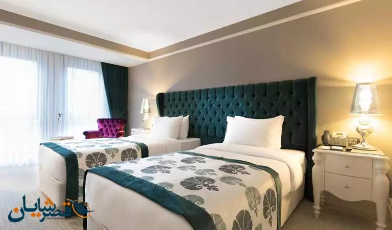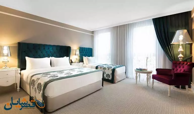 هتل دارای 86 باب اتاق و سوئیت است که اتاق های هتل شامل اتاق دبل دیلاکس، دبل استاندارد،توئین استاندارد، تریپل استاندارد،تریپل دبلاکس، فمیلی روم و... می باشد. تمامی اتاق ها دارای امکاناتی نظیر تلویزیون با کانال های ماهواره ای، تختخواب استاندارد، مبلمان، کمد لباس، حمام اختصاصی مجهز به لوازم آرایشی رایگان ، سشوار، سیستم تهویه مطبوع و ...می باشد.